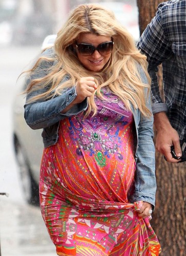 Grávida, Jessica Simpson passa sufoco para não se molhar