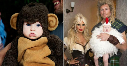 Criativa, Jessica Simpson usou duas fantasias fofas para vestir sua bebê Maxwell Drew. A pequena, de seis meses, apareceu de galinha e de macaco nas celebrações de Halloween